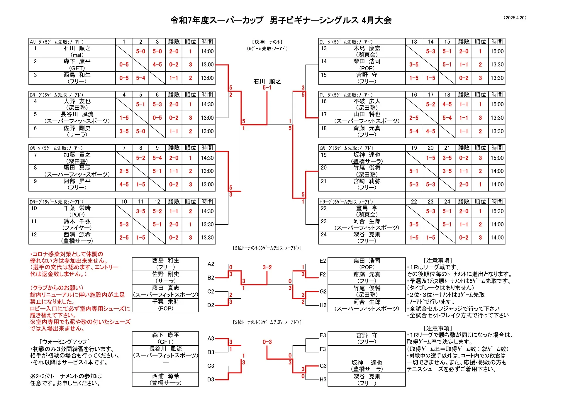 【試合結果】4/20(日)男子ビギナーシングルス