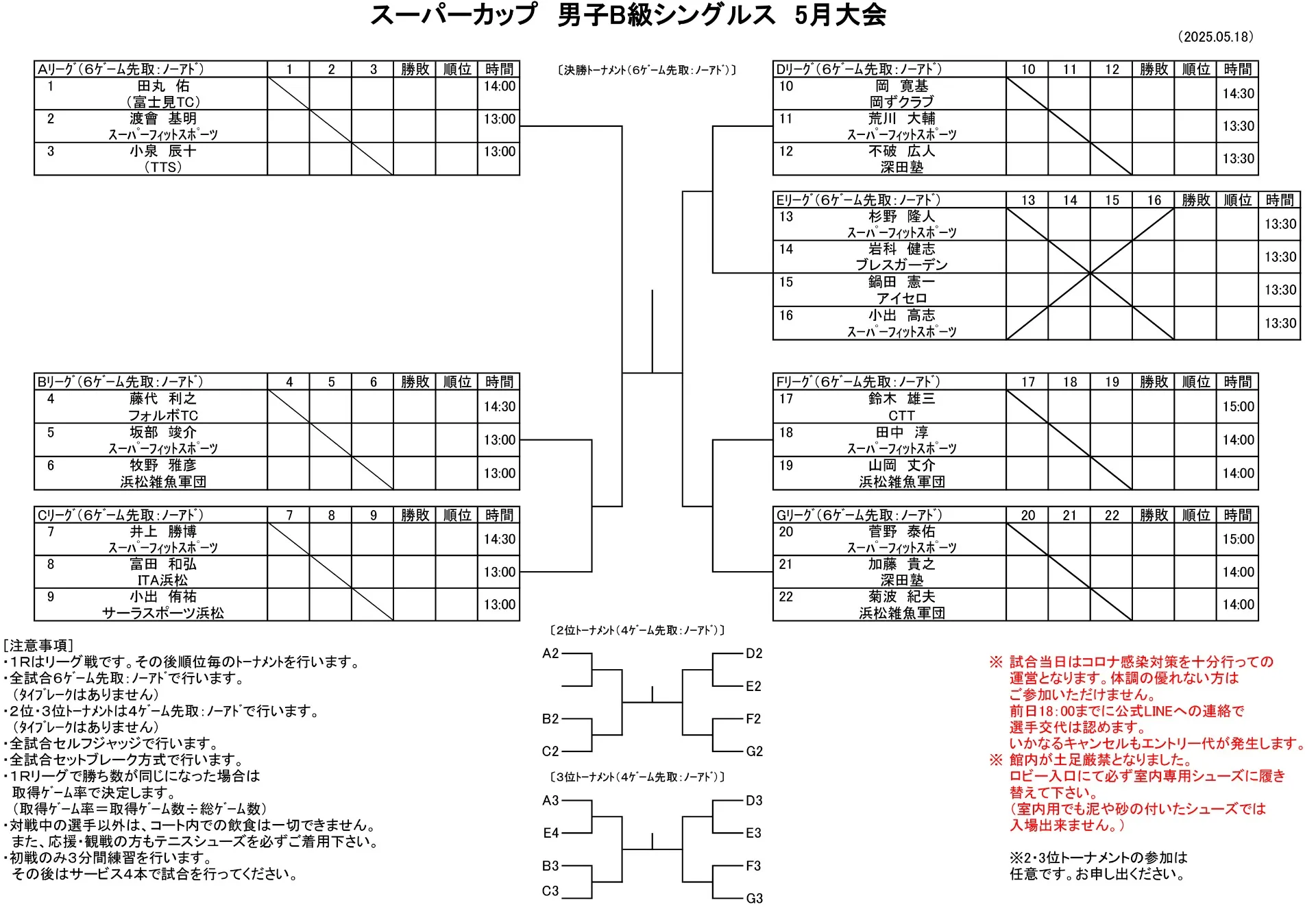 【ドロー発表】5/18(日)男子B級シングルス