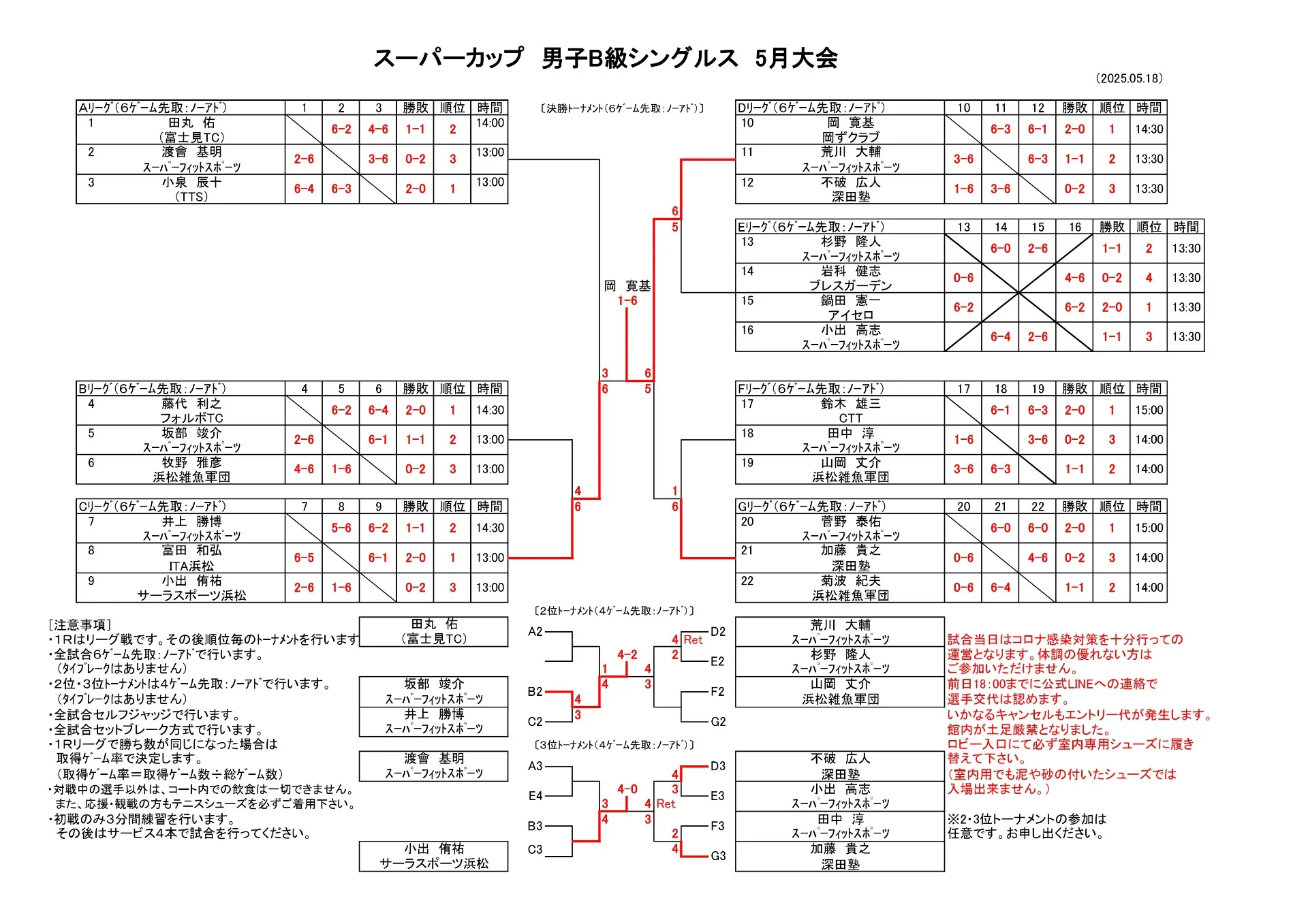【試合結果】5/18(日)男子B級シングルス大会