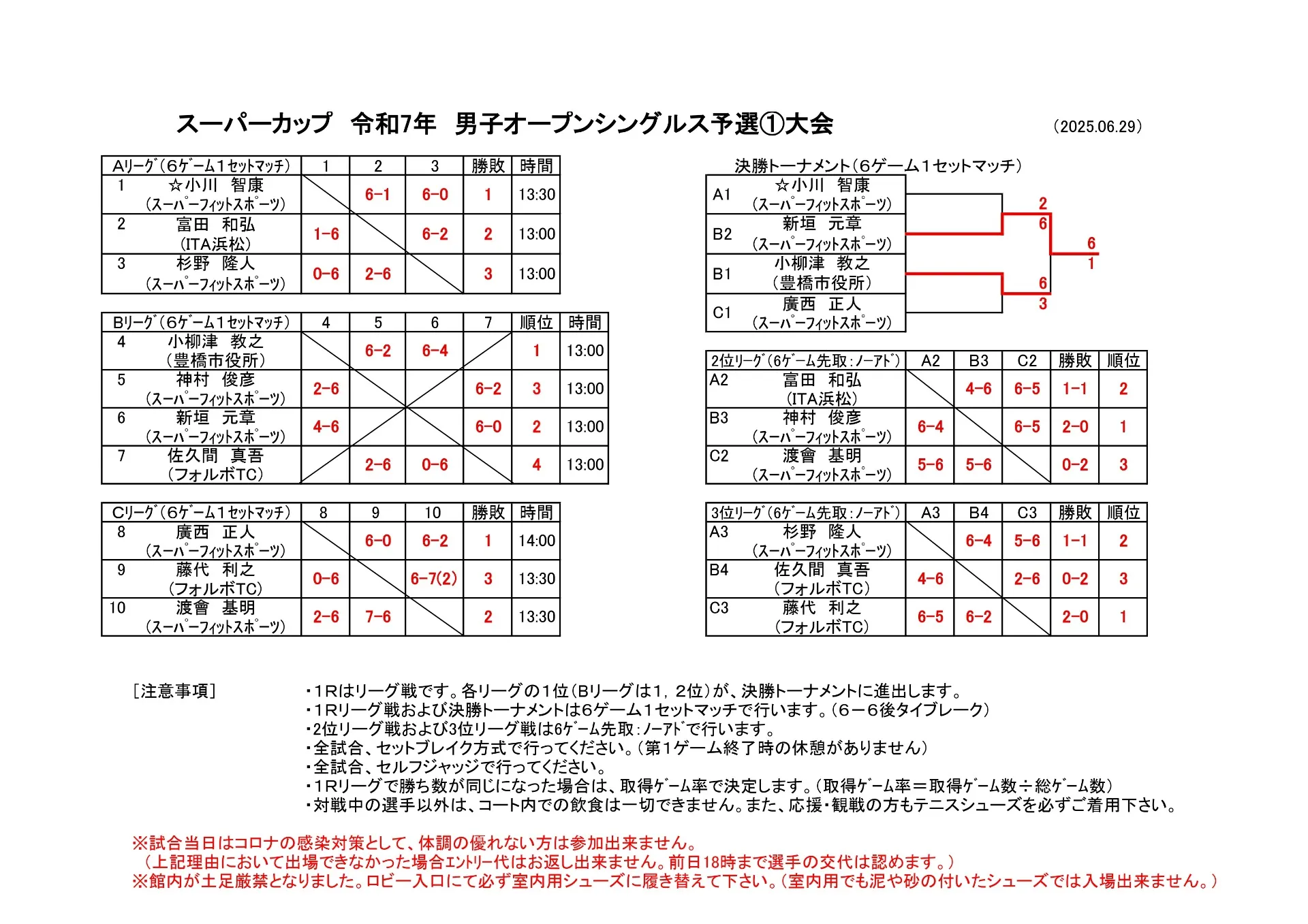 スーパーフィットスポーツでは、6/29(日)男子オープンシングルス予選①大会が行われました。