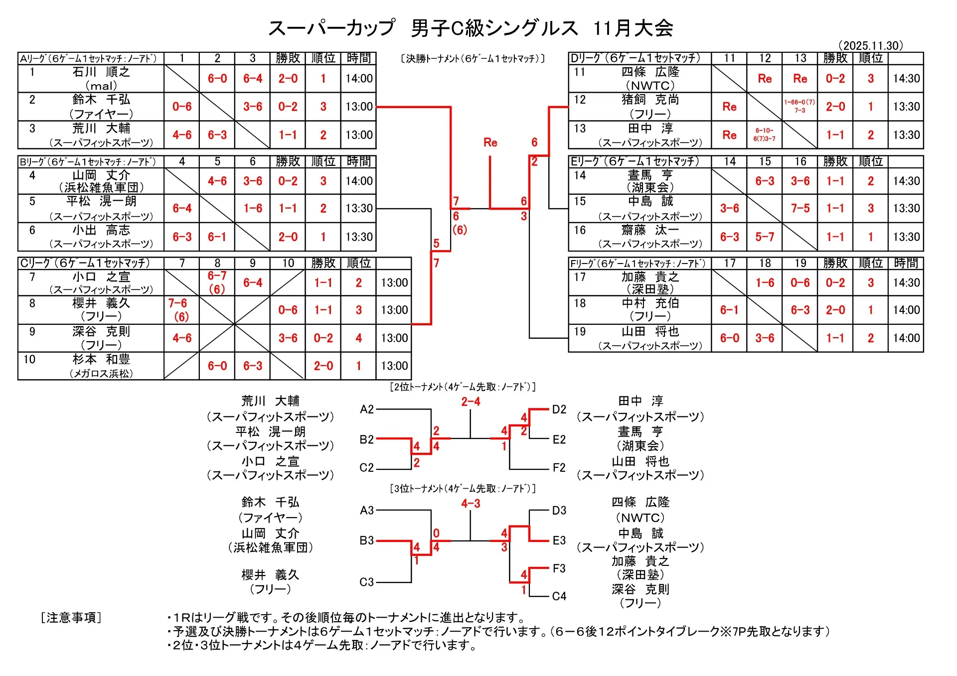 スーパーフィットスポーツでは、11/30(日)男子C級シングルス大会が行われました。