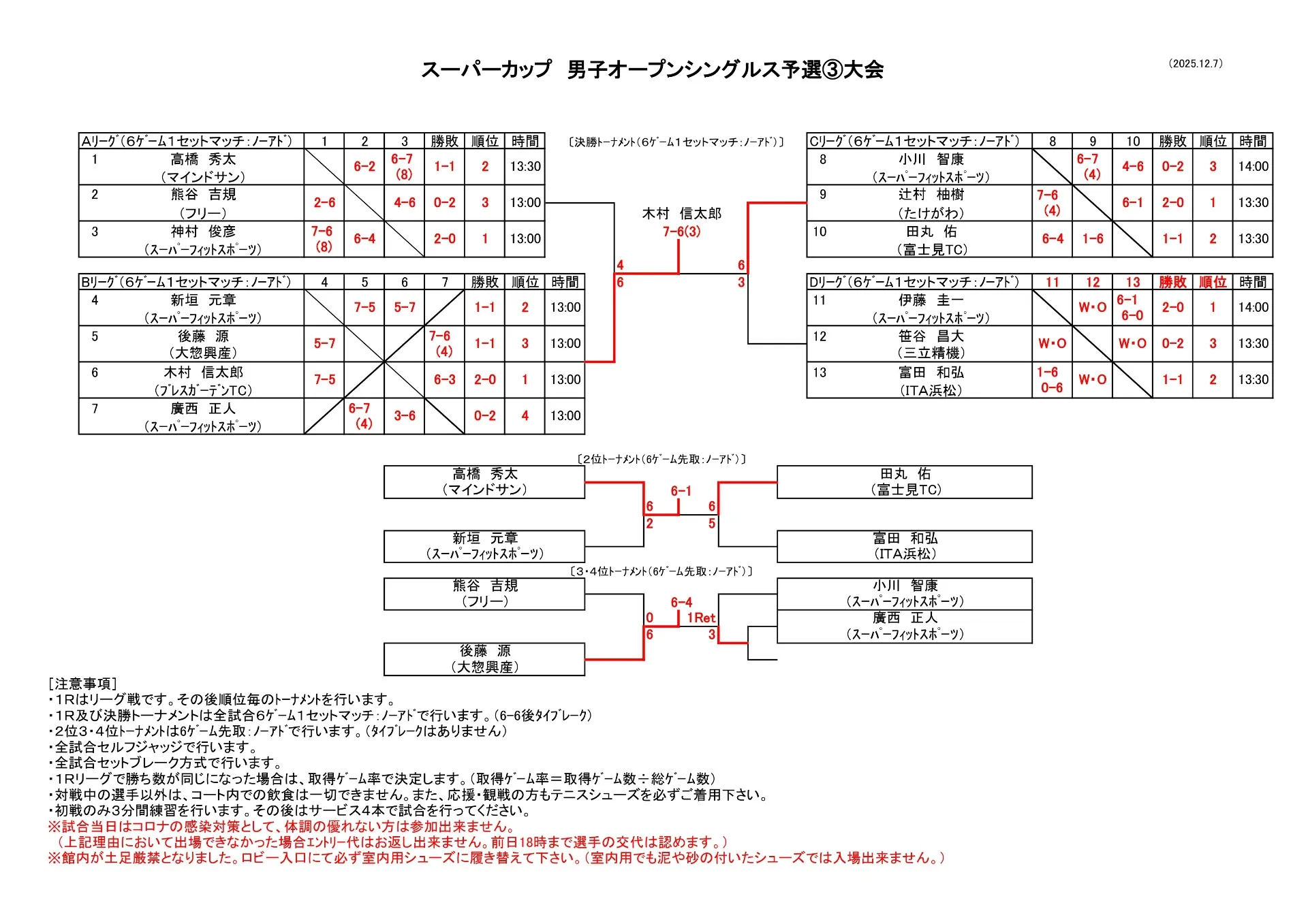 【試合結果】12/7(日)男子オープンシングルス予選③